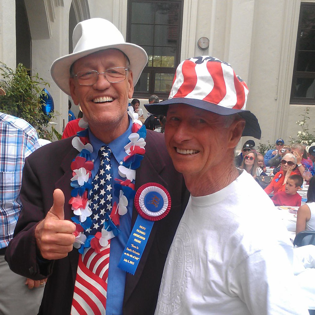 He served on local boards for over 40 years, including the Pacific Palisades Community Council (PPCC) and Santa Monica Canyon Civic Association. He worked to preserve the historic Eucalyptus Grove in Rustic Canyon, hand watering the trees weekly for several years. He received the PPCC Community Service Award in 2008, was Citizen of the Year in 2011, and was named Pride of the Palisades in 2019. Local volunteers called him "the Wizard" for what he was able to accomplish (and, in good humor, he and his wife Diane created a Wizard Halloween costume, seen below, which was used for several public events to get a laugh).